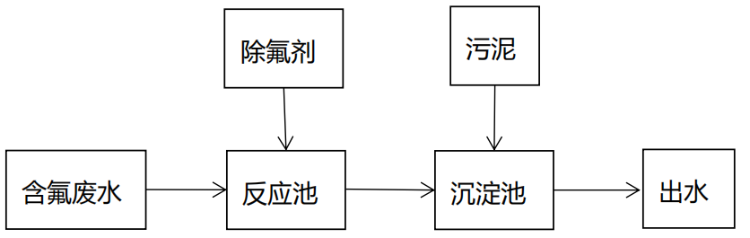 先將除氟劑直接投加到待處理含氟廢水中,依實際情況充分攪拌反應15分鐘后,配合投加聚丙烯酰胺(PAM)將沉淀物絮凝。具體投加量與實際廢水中氟離子含量及水質情況有關。